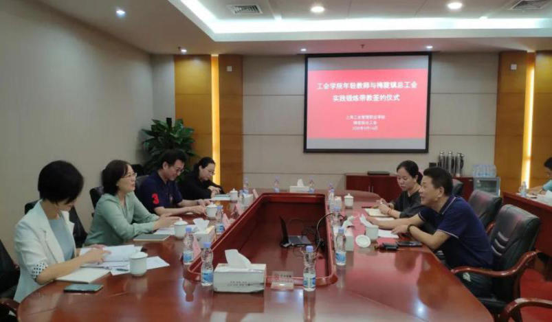 9月16日上午,学院教师洪慜与梅陇镇总工会副主席杨芸签署带教协议,开始在梅陇镇总工会实践锻炼。