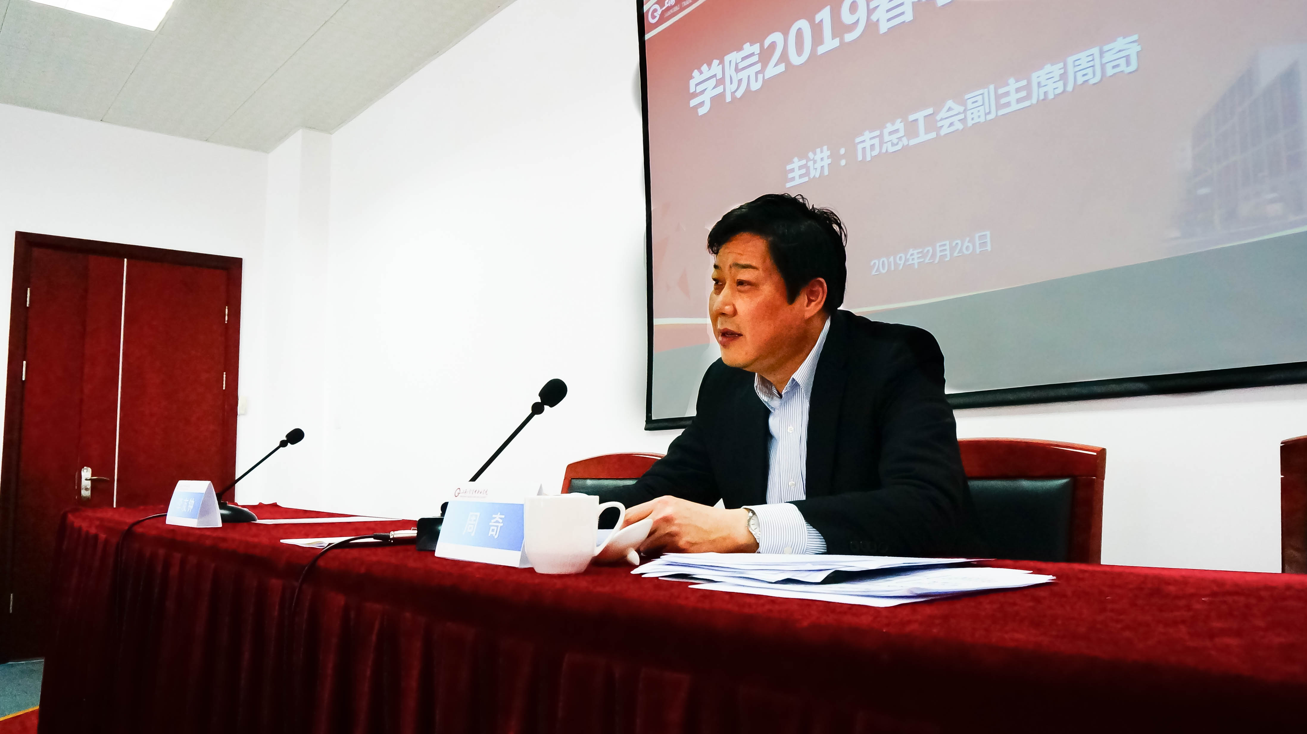 人勤春来早,万事日相催。2月26日--27日,寒假开学伊始,学院组织全体教职员工,在奉贤校区开展了“围绕中心,服务大局,促进学院发展”为主题的春季集中培训。通过为期两天的集中培训,广大教职工收获很大,全面了解了市总工会主要部门的工作,特别是周奇副主席的报告,对学院进一步发展有很大的启示。本次集中培训呈现以下一个特点: